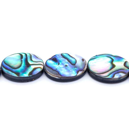 Abalone AKA Paua Shell is one of the ocean’s most radiant gems. Paua is a particularly stunning species of Abalone (Haliotis iris) found along the coast of New Zealand. Abalone shells are dark and dull on the outer surface, but the inside nacre displays a miraculous play of light and color. The hypnotically undulating colors within the shell exhibit an iridescent shimmer comparable to opal. These Abalone shell beads are coated in a protective lacquer that also enhances the sheen of the bead. The color and pattern of each Abalone is totally unique and will vary between bead to bead.