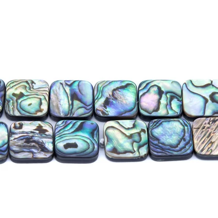 Abalone AKA Paua Shell is one of the ocean’s most radiant gems. Paua is a particularly stunning species of Abalone (Haliotis iris) found along the coast of New Zealand. Abalone shells are dark and dull on the outer surface, but the inside nacre displays a miraculous play of light and color. The hypnotically undulating colors within the shell exhibit an iridescent shimmer comparable to opal. These Abalone shell beads are coated in a protective lacquer that also enhances the sheen of the bead. The color and pattern of each Abalone is totally unique and will vary between bead to bead.