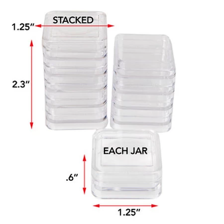 BC1010-ORG: BeadSmith Clear Square Stacking Containers With 2 Magnifying Lids- 2 Stacks 10 Jars 1.25" X 2.3" -Handmade Beads Discount Store BC1010 ORG DIM