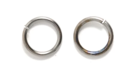 These open jump rings measure 8mm and are made from 18 gauge steel wire. These jump rings contain +/- 8% nickel in the plating to keep it from being damaged when working with tools to manipulate the jump rings. These jump rings are available in many plated finishes and are 100% lead-safe.