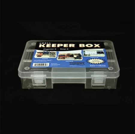 This Keeper box is crafted from strong translucent plastic. This keeper box offers 9 rounded bottom compartments with snug fit track to keep beads and supplies from spilling into other compartments.