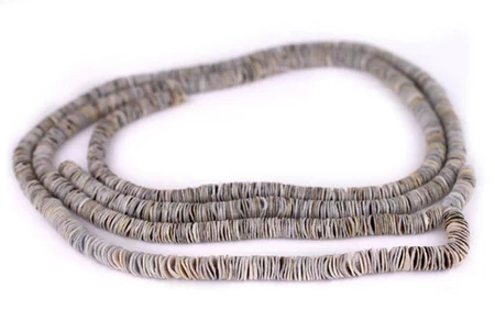 These grey heishi beads are made from natural shell. The slight variations in colors and shape of the beads will make them a fun addition to your beading project. Look carefully and you will see that each bead is unique. Individual beads measure 1 x 7-8mm with a hole size of approximately 1mm