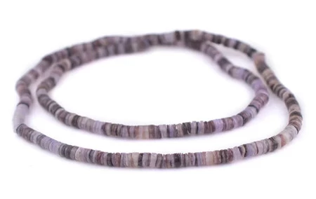These purple color heishi beads are made from natural shell. The slight variations in colors and shape of the beads will make them a fun addition to your beading project. Look carefully and you will see that each bead is unique. Individual beads measure 2-3 x 5mm with approximately 400 beads on each 24″ strand.