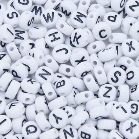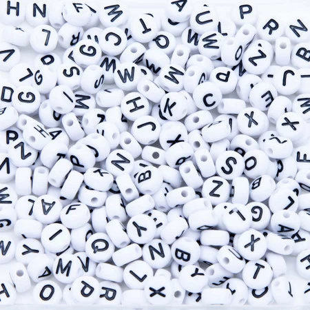 PL200-11: Acrylic Alphabet White/Black Disc 4x7mm 200Pcs -Handmade Beads Discount Store PL200 11 Beads AcrylicBeads