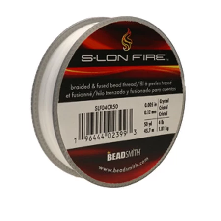 S-LON FIRE is a microfused braided bead thread – a budget friendly alternative to FireLine . Durable, strong, stretch resistant, and knots easily. Fits your beading needle sizes #10, #12, and #13, Use instead of nylon threads when weaving sharp edged beads such as crystals and bugle beads.