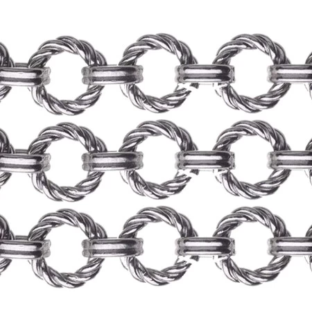 This stunning designer stainless steel cable chain features stunning rope like like round links connected with smaller smooth double oval links. This chain is made from round 10 gauge wire and measures 11mm round with a 6mm hole. The smaller link measures 8.5mm x 6.75mm. This chain is made from a polished solid 304 marine-grade stainless steel. 304 Stainless steel is extremely durable and will not tarnish or change color.