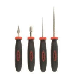 Sometimes the hole in a bead or pearl is too small, is not straight, or the two holes in some hand-drilled beads may not quite meet. This simple diamond tipped bead reamer is the perfect tool set to quickly solves all those problems. This four piece set has all the shapes and widths you’ll ever need. Steel tools encrusted with industrial grade diamond are used to hand grind bead holes larger, and take out unwanted burrs from bead holes before stringing